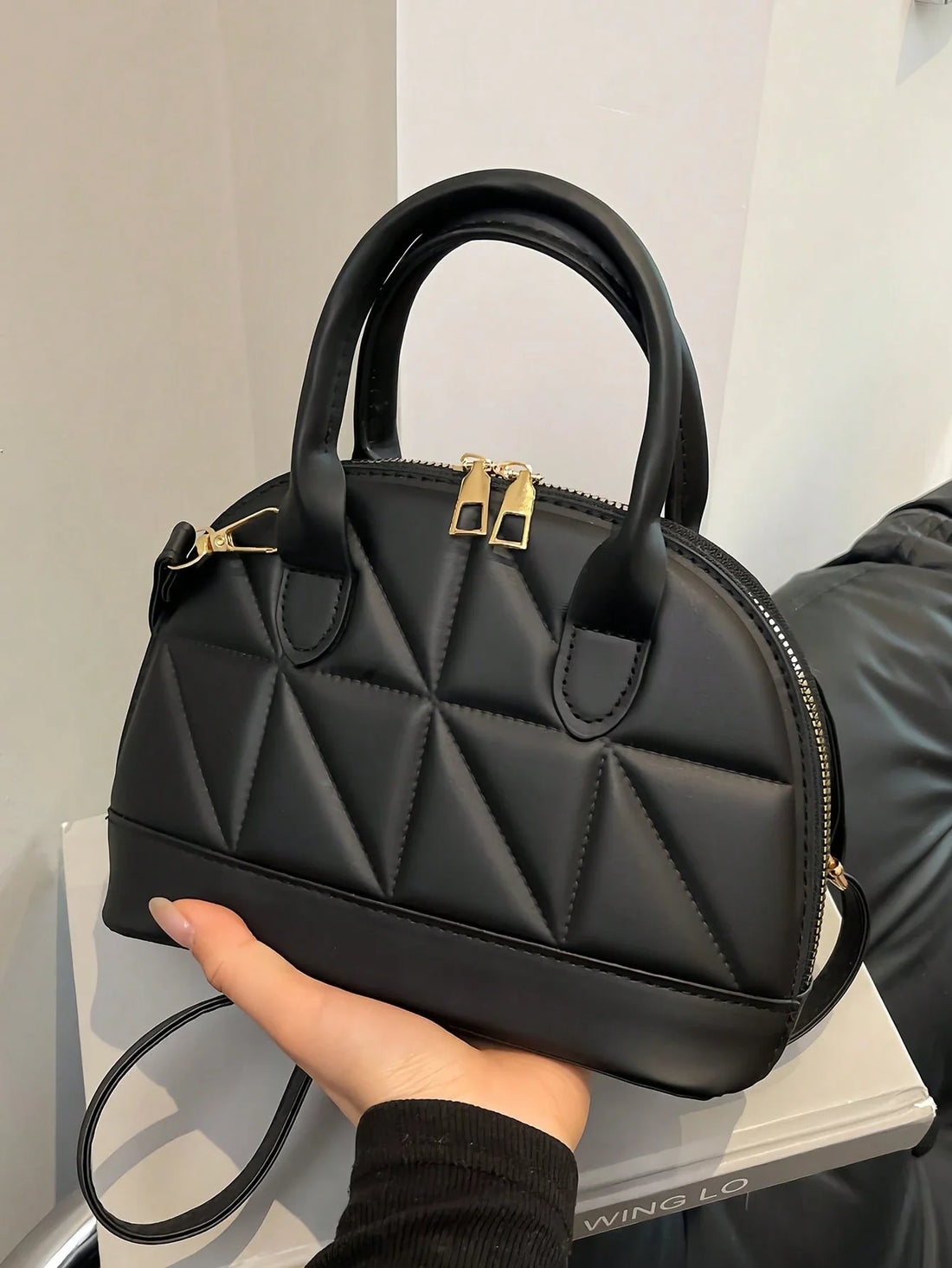 Classic Fashion Solid Color Quilted PU Leather Tote Bag, Women's Versatile Dome Top Handle Crossbody Bag, Simple Travel Vacation Handbag With Adjustable Shoulder Strap, Business Commuting Briefcase Shoulder Bags