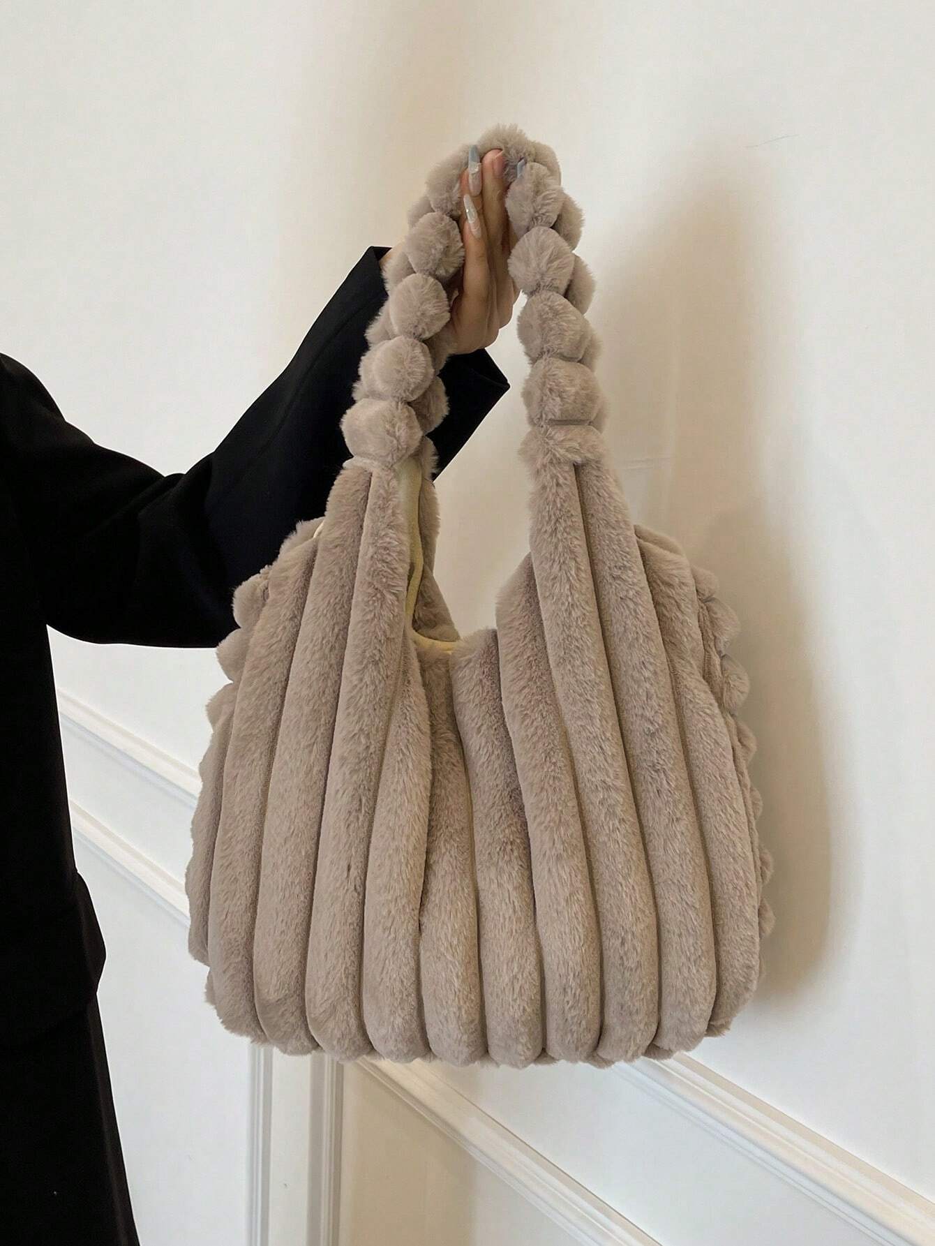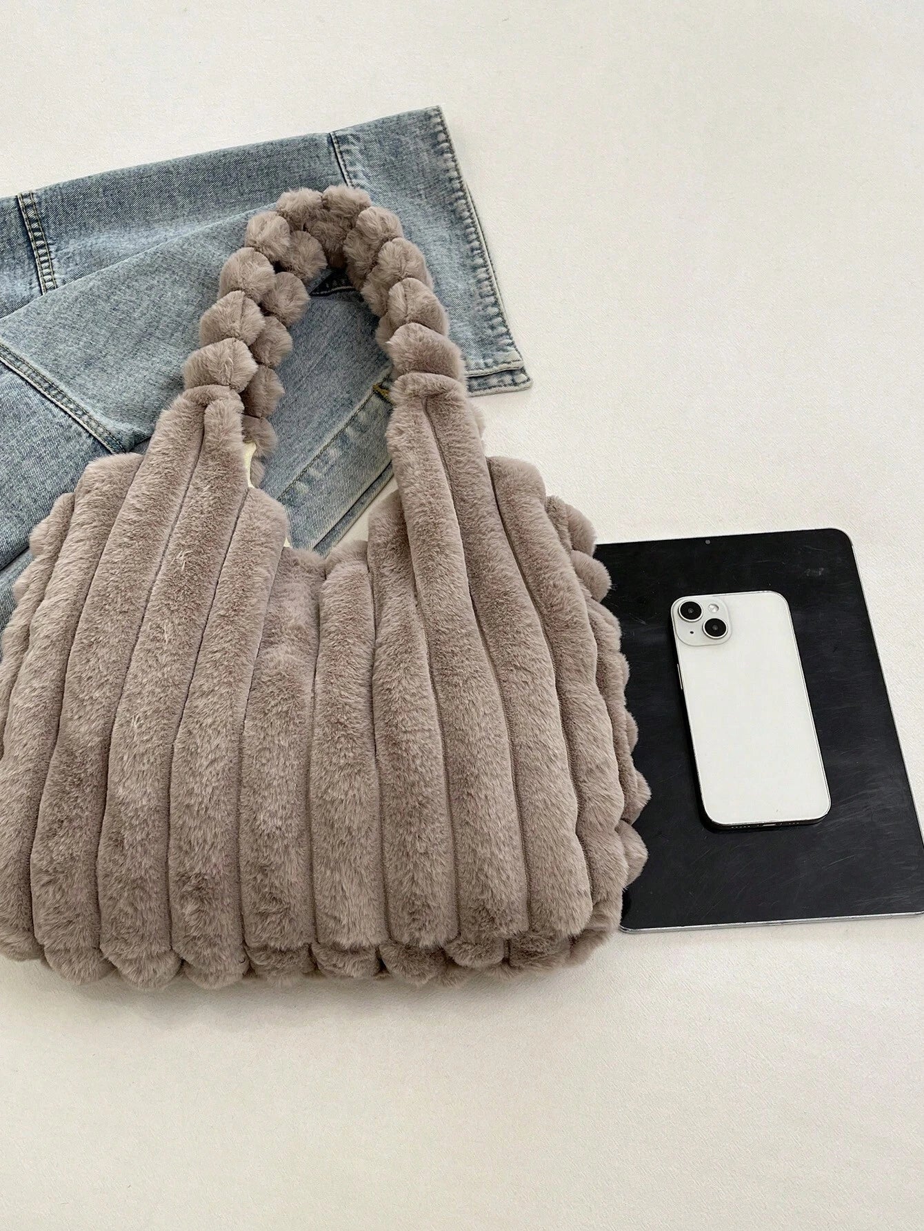 1pc Plush Large Capacity Shoulder Tote Bag, Minimalist Design, Suitable For Women Daily Use, Shopping, Dating, As Gift