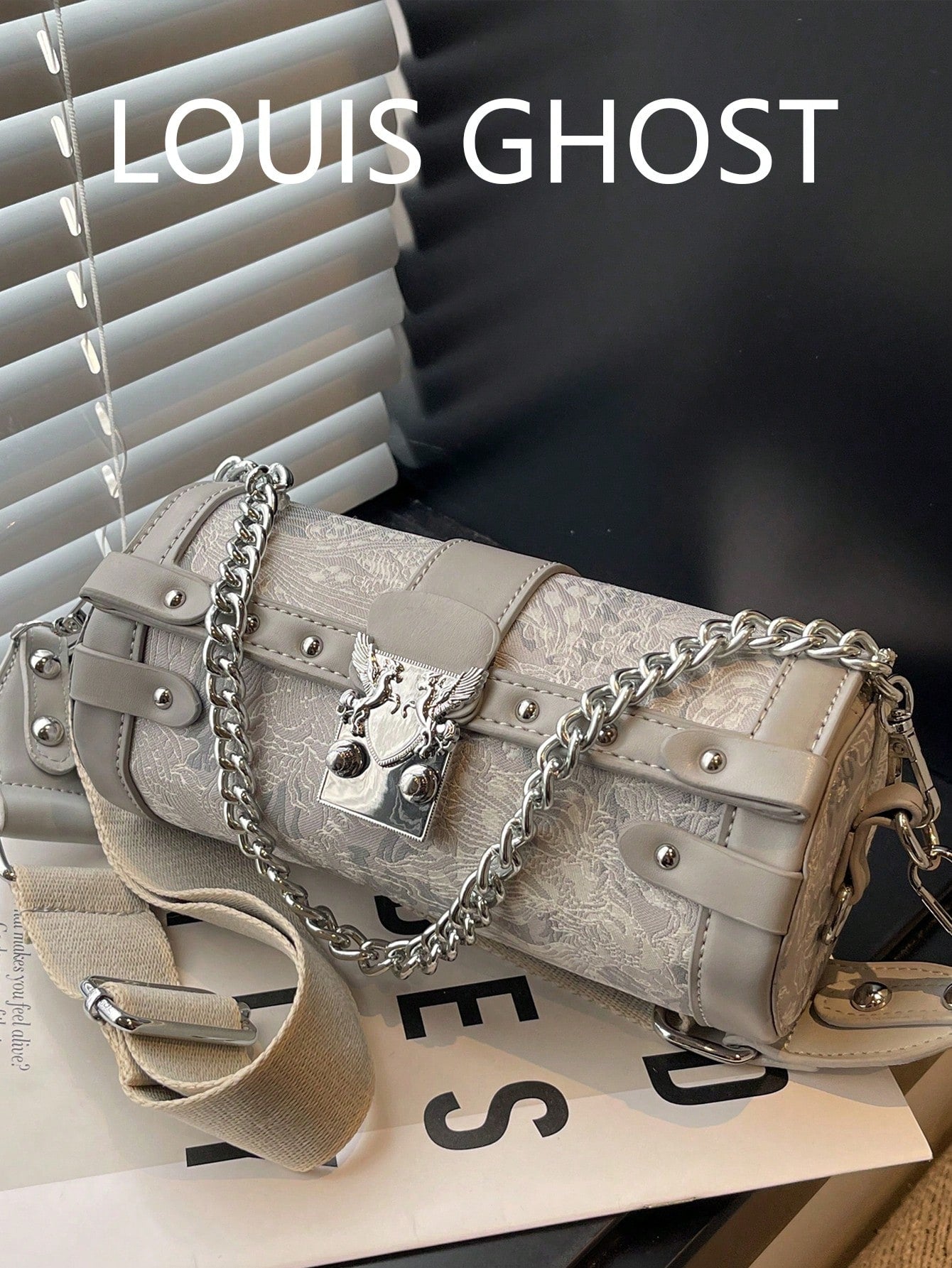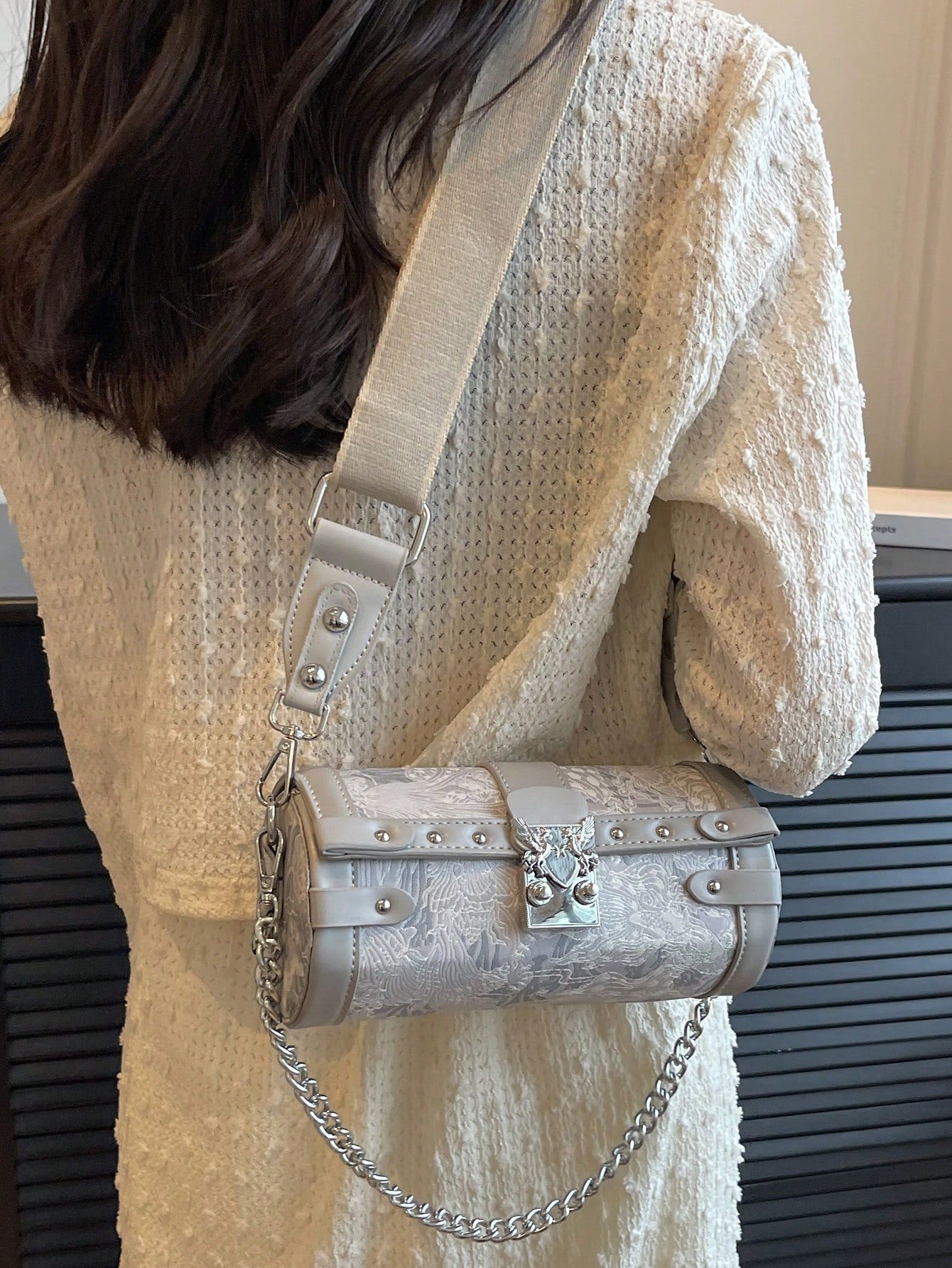 Fashionable Shoulder Hand-Held Small Square Bag Cylindrical Bag - 4