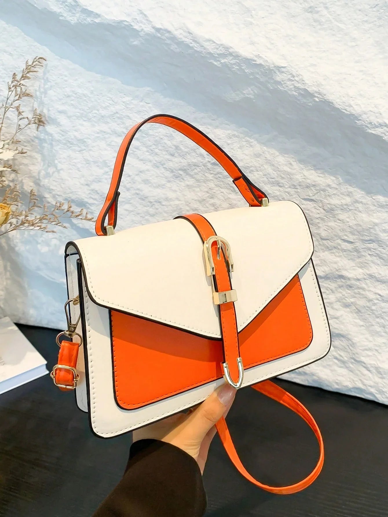 Command attention with our belt-accented flap shoulder bag – a perfect fusion of urban edge and refined elegance. This statement piece features bold belt-inspired detailing on premium faux leather, offering runway-ready style with practical everyday wearability.