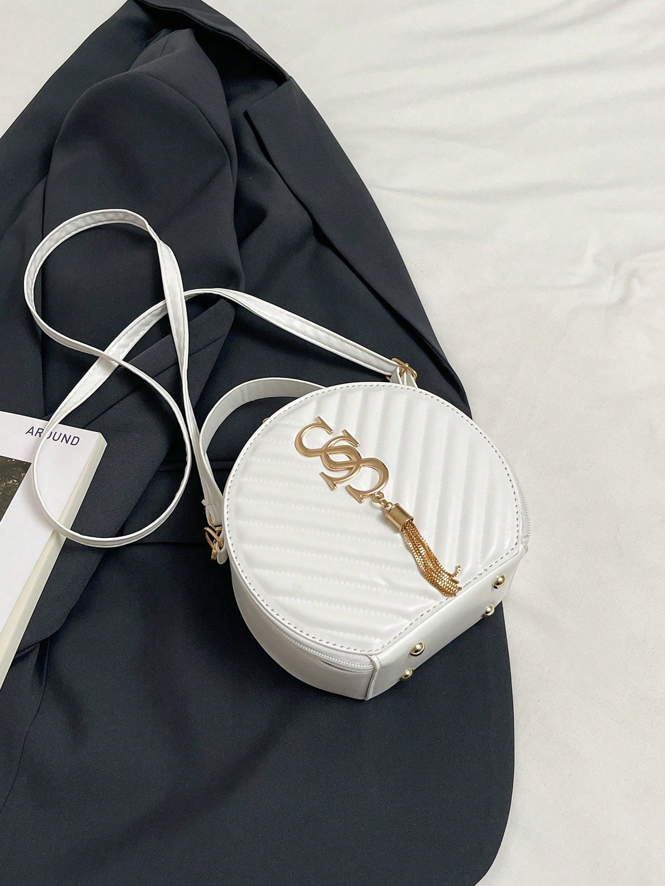 Design: A distinctive round shape with a vintage aesthetic, complemented by a tassel charm and a chic chain strap.